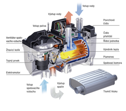 Vykurovacie zariadenie je integrované do okruhu chladiacej kvapaliny motora. Získavaná vykurovacia energia